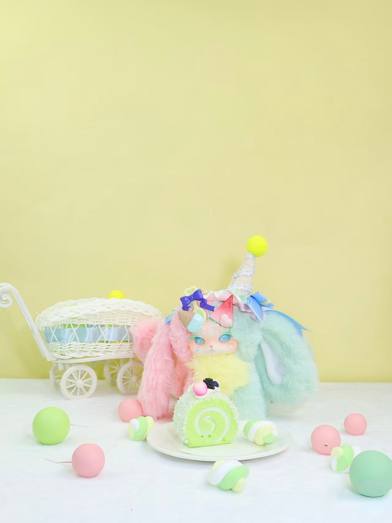 The 4th Generation Bunny Dragon blends fantasy creatures with sweet dessert-inspired elements, featuring soft pastel colors and a warm, comforting style.